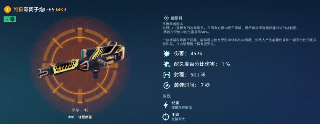 拥有无视防御机制”百分比伤害“的终极武器,前排主战机甲克星——[终极等离子炮L-85]&[终极等离子炮M-82](以下合称:[终极衰解枪]),对战场格局影响显著。 (数据信息请以游戏内展示为准) 重甲防护体系的崩解序曲已然奏响,新型战术体系的重构进程即将展开。本期小坦就带大家好好聊聊[终极衰解枪]! 机制破甲 重炮贯杀 拥有500米射程的[终极衰解枪] 属于中距离作战武器,其核心优势在于独特