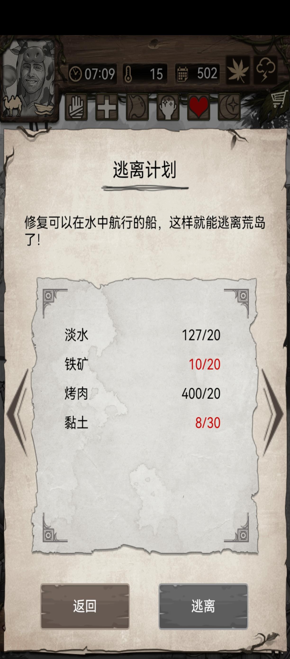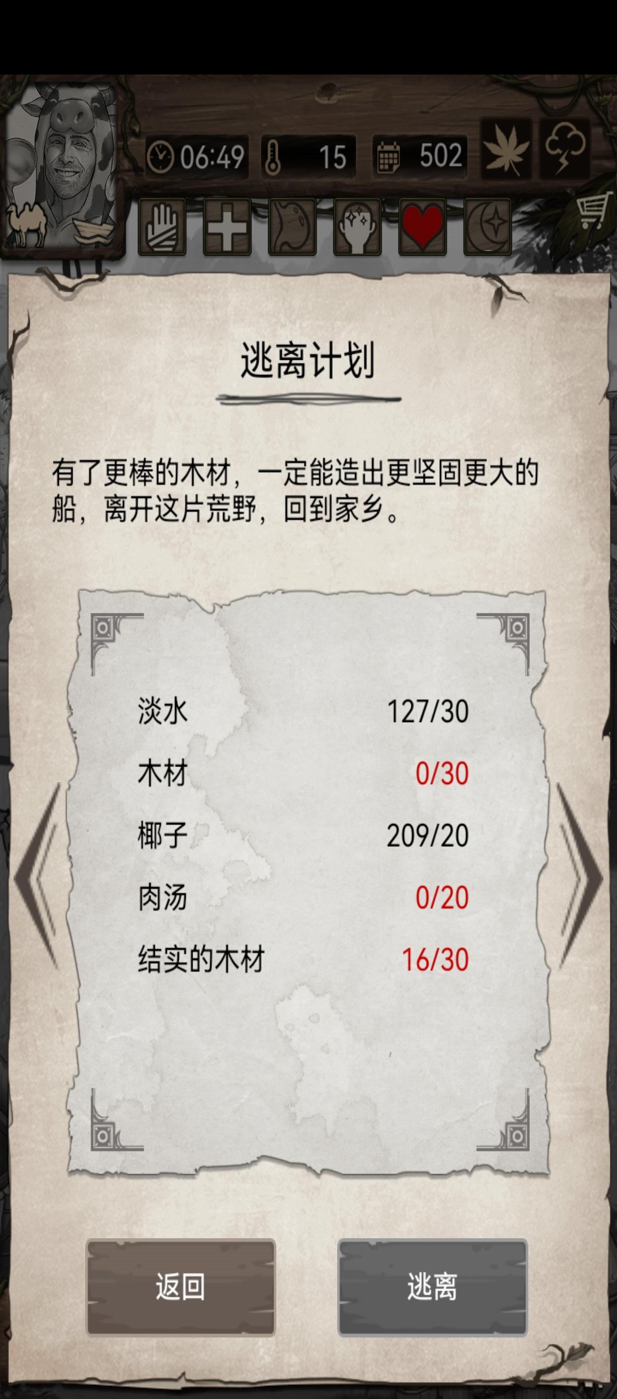 新人通关,逃生路线最好走大船逃生。而新人大船逃生基本都要过冬,过冬则需要大量的木头,因此打通雨林是刚需。我们需要在20天前后推完雨林(当然越早越好),之后攒木头,做木炭,然后过冬了。过完冬也差不多可以成功逃离了。本攻略打法旨于帮新人过关,有需求的过关的物品只有商店卖的背包和鞋子(都可以很快的0氪获得),其他的都是附赠品,有没有皆可 过冬事项(重要)请在「火炕」里把「木头」烧成「木炭」「