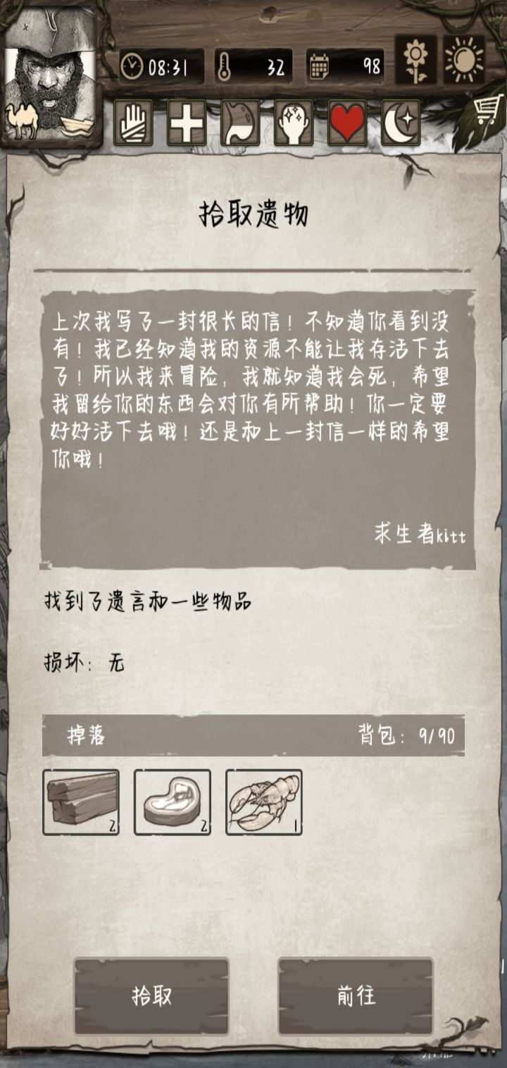 说实话,这个游戏的设计太天才了!看似单机的游戏中,你能够获得别人的“帮助”和留言(至于怎么帮的你别管)这些留言有的告诫,有的激励,再加上游戏本就代入感十足的设计,二者结合后代入感剧增,我很少为一款游戏动容,上一款让我动容的游戏还是二游……只可惜,这款游戏停更了。虽然这款游戏停更了,但仍有想要尝试这款游戏的新人踏上这片荒野,比如我。对了,想要友情包的话留下ID,我最近经常玩这款游戏,有的话都会送出