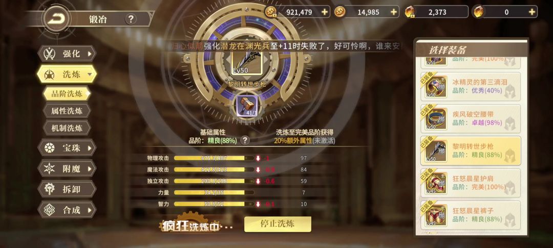 录视频录到一半,原先是88个洗练锤洗不出50级的97%的武器升到100%,这概率啧啧啧#游戏讨论