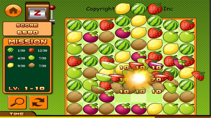 操作非常简单,轻轻点击两个相邻的水果让它们交换位置,只要使得3个(或以上)相同的水果连成一线即可消除它们哦。