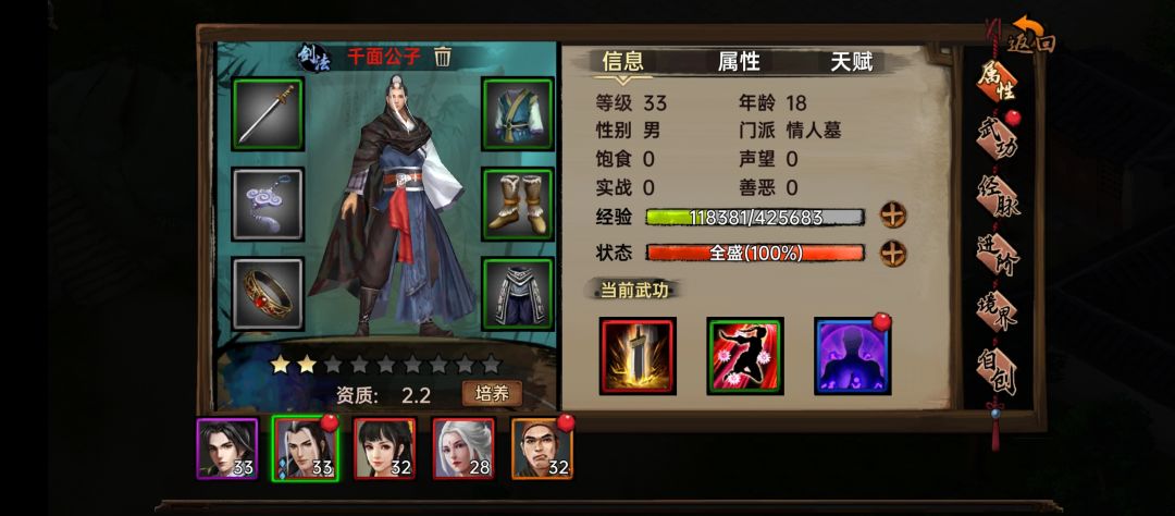 一般都推荐的霸刀, 玩了3,4个月,一共92000贡献学完了霸刀的门派技能,一天1230贡献,做了有70天! 偶然看到各个门派的技能。感觉主角玩剑也不错。 因为 华山红色剑法群攻,武当红色剑法单体。 武当华山内功都加气血上限(+60%,+70%), 而霸刀红色内功不加气血上限。 短期的一个理解,当然说后期主角输出没用,那就另外说了。 毕竟0氪没有那么多自创。 原地址: https://tieba.