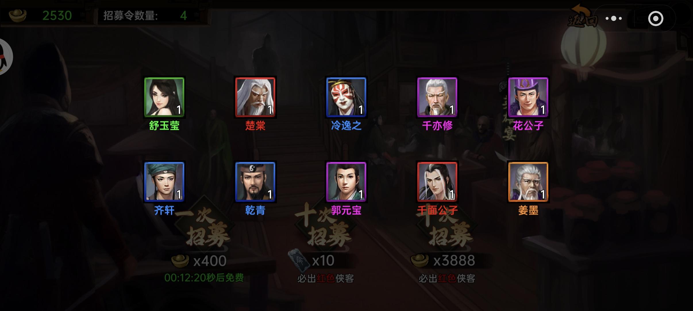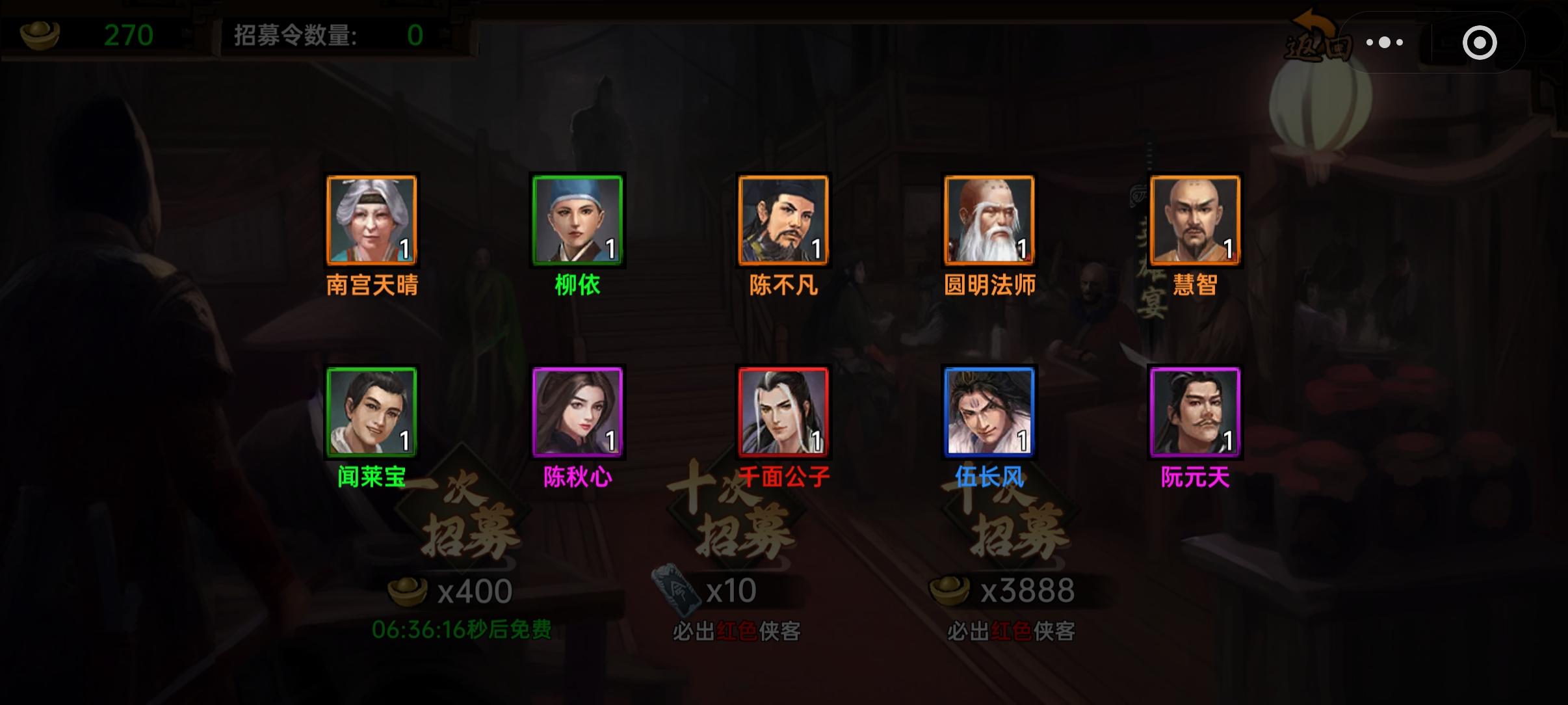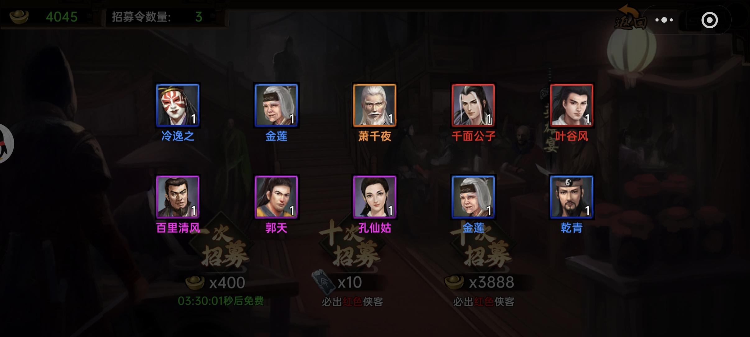 要求:上阵侠客红群攻一个(必须红武),红单攻一个(随意)培养方案:主角只点轻功(一直都是废物),历练点专注培养红群攻,红单攻如果是红武就能养注意:攒下来的历练点不要给金,紫武侠,宁可空着上阵位置都不要给规划:临安主线结束前不养主角1、桂花村:过主线,支线全清,历练点全部留着桂花村结束给十连(刷不到红群攻加红武就重开)2、临安:主线会卡两次,注意操作。优先主线,会卡十二时辰的夜晚戌时