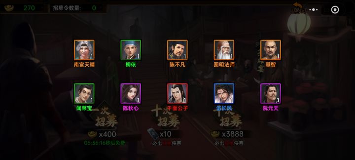 什么开局要选千面公子,出手慢得要死,还不自带紫色轻功内功坦度不够,要白凌霜抗伤害,目前可以打到无量20层,闲出手慢的建议改抽曲言风,毕竟这是个漫长的养成游戏,除了刀魔、剑无敌,后面都会有的。