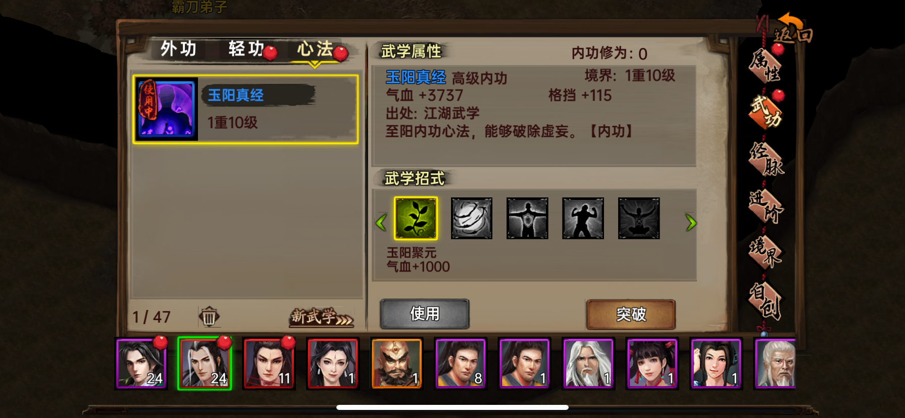 开局很重要。需要刷开局武侠!最好2-3个悟性2.2开局并有一群最佳!肉盾主角华烨付青山!群白凌雪,千面公子,单南无双,曲言风!或不追求极致悟性2.2都可以用!一般剑刀拳奇门棍法每个侠客玩一个!主练一个侠客!这样各种成长丹药不会浪费!氪老无所谓!5个都玩剑才狠人!主角能白嫖6个门派的红武就是时间长!当肉就玩刀或拳!刀格挡高拳闪避高看个人喜好!以上属于个人建议对新人有些用处!