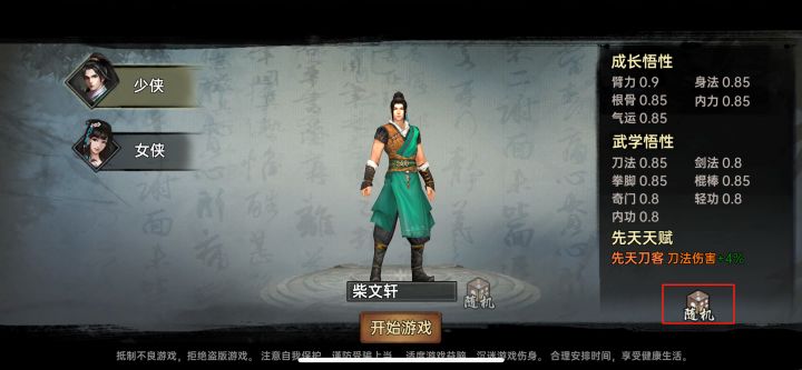 先天天赋无法更改!!!开局创建角色点随机可以选好天赋再开局。