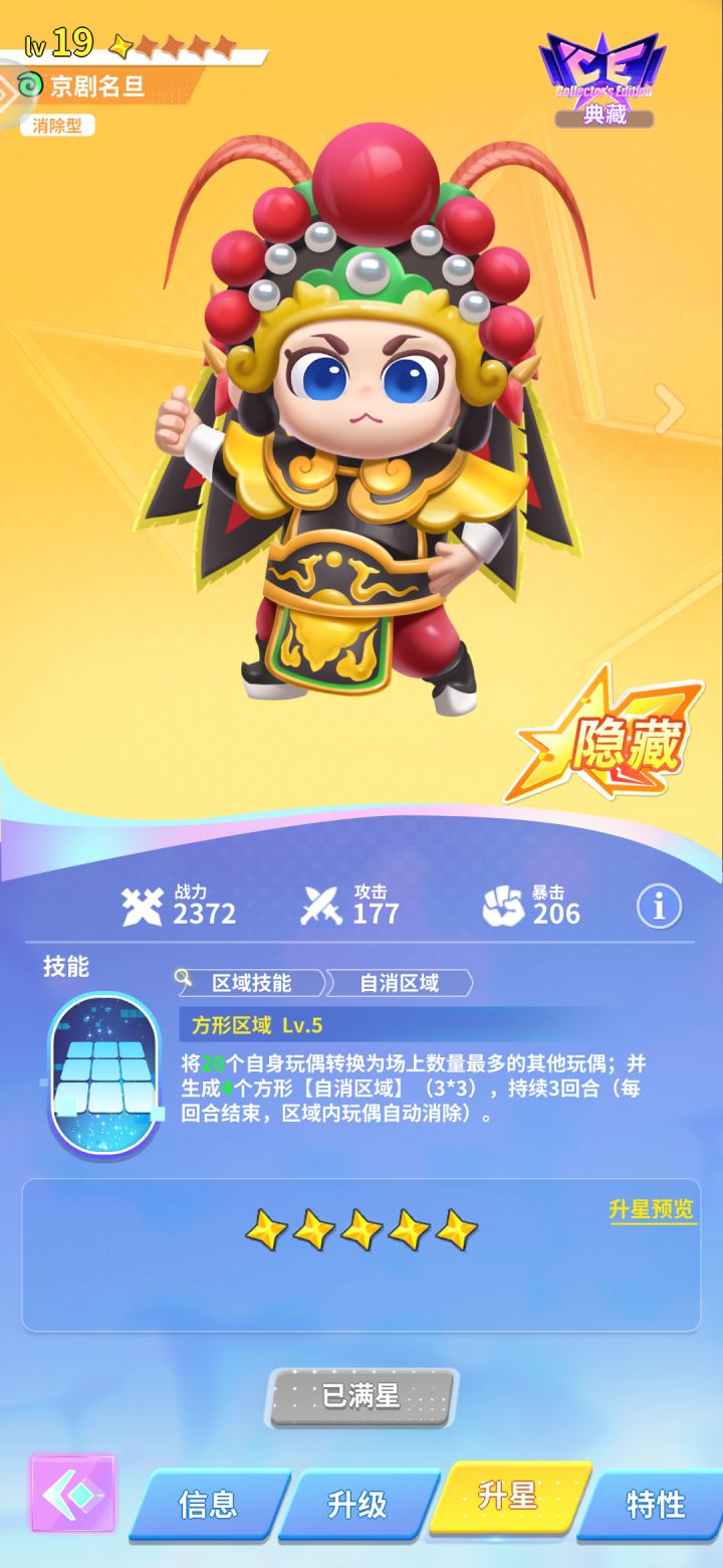 12-15是我觉得目前为止最阴间的三星,第一个条件是要消除15个武器箱,但是但凡钻头启动后你正常消除了3个武器箱,都不说你弹射的伤害,光武器伤害一回合就能送走boss,这都不是练度低就能打,啥练度都一样,千万不要带加伤害,神兽加成的潮品,尽量不要让boss受太多伤害。这里还是尽可能拉低队伍练度,用到艾米莉亚系列的3个硬消除角色,尽可能不让武器被放出来造成伤害,这样才有机会等生成新箱子,消除到目标的15个。试了一下午,最理想的情况就是中间刷完彩虹猪后能量瓶落到上面,不是这开局感觉可以重开了。然后用彩虹猪+能量瓶就能把技能补到2,接下来利用横向消除运气好2次武器箱子全部消除,不会出武器,然后一般来说这个时候底下钻头也快启动了,因为没有武器所以血量还很多,接下来就要小心的消除,之后的武器箱子一次最多刷3个出来,并且用技能转化后消除的地方不会生成武器箱,所以就需要天时地利人和,如果可以触发一些箭头或者炸弹,尽可能一次性刷出3箱子,运气好都在一排或者一列或者九宫格内最好,技能消除再循环,就能达成!