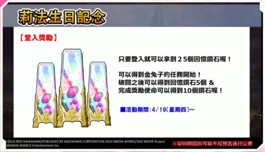 《刀剑神域》游戏新作《刀剑神域 异绊集结》(《SAO Last Recollection》)公开,将于2023年发售,登陆PS4、PS5、Xbox Series X/S、Xbox One、Steam平台,本作为《刀剑神域》十周年纪念作。