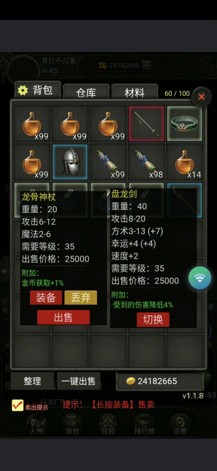 1.💰肝氪度:极度肝,尤其是在一次次更新以后,掉落被一砍再砍,老玩家开心坏了,以前爆率高,升级快,人家包里道具用不完,开小号升满也就几天时间,新手玩家不氪金,我劝你老老实实要不别玩,要不准备一个云机!至于氪金,月卡还行,一个月30,季卡会便宜几块钱,免广告和每天9选1套餐,至于那些材料……你想开局起飞,运9速6是必备,然后就是全身宝石,反正都搞全了大几百!