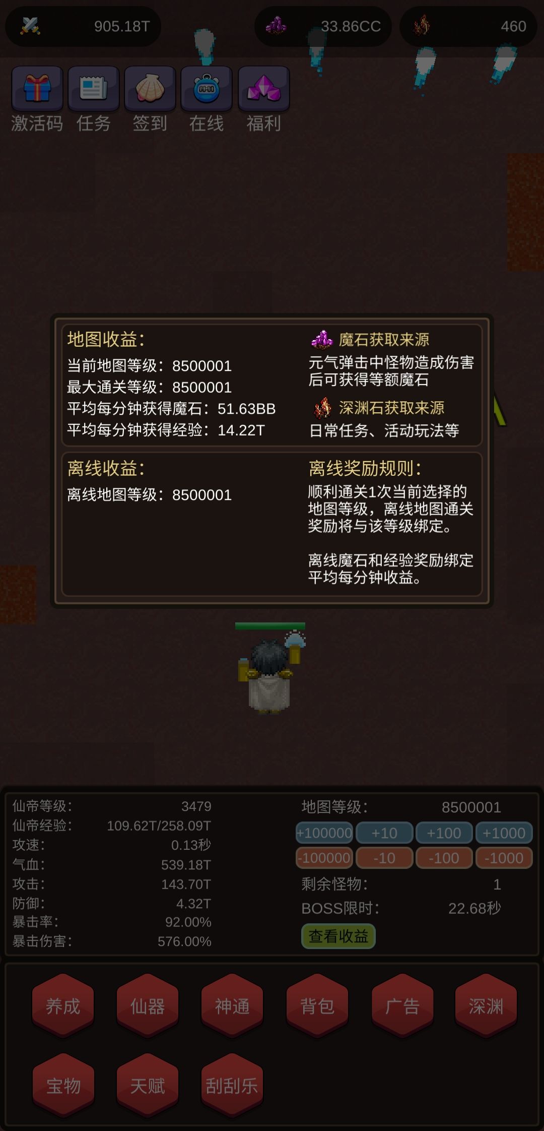 23.星穹六分仪:增加星魂探索次数一次,每级增加一次,满级10级 24.真理之境:拥有高级神器的情况下,等级大于1级的时候生效。增加高级神器的倍数1倍,满级30级,满级30倍 25.虚空沙漏:当前减少星魂战斗时间间隔1倍,满级5级,满级5倍 26.万物熔炉:增加时空回廊的收藏总攻击伤害,满级150级 27.英雄刻印:增加时空回廊的收藏总暴击伤害,满级50级 28.点击之锤:增加时空回廊的收藏总点击