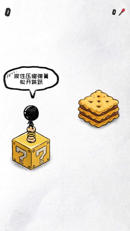 按住屏幕压缩弹簧,松开后弹簧将会让火柴人跃起,小心不要落空!