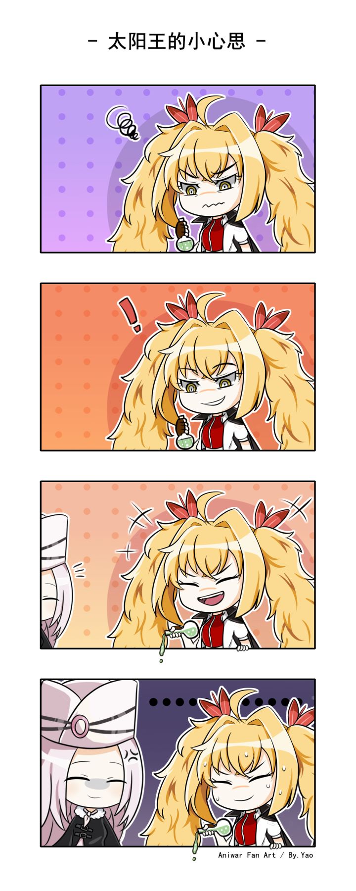 忽然想起来好久没用tap发图了hhh冒泡!光速来发一点阿涅瓦hhh好喜欢太阳王!伪官方p了个立绘图x以及太阳王的QQ小人的双马尾真的好像炸虾哈哈哈哈,炸虾王(?)请你吃炸虾(bushi)以及,图上内测之前画的可能有点设定的差错x内测的剧情没有太阳王,sad,只抠到的一点点小沙雕x灵感来源见游戏截图w以及分享两个可爱101截图hhh小锤子和电锯也都是太阳王的图案呢哈哈哈哈哈