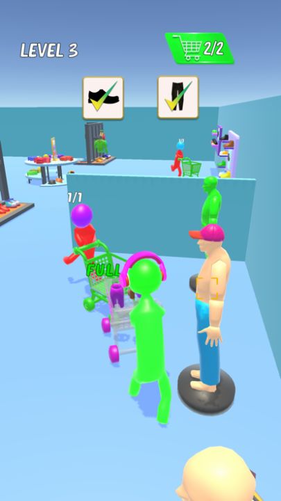 Move your character with the joystick. Take the clothes in the mission given to you, crush the others.
