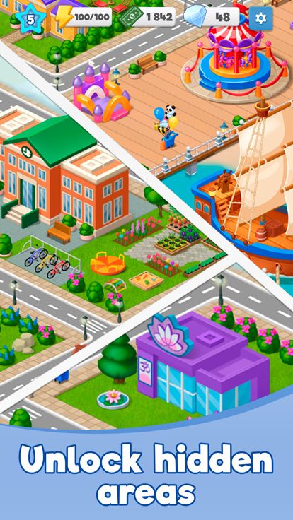 在小镇上找点活干,并使用你的合并技能来修复各个建筑物和街道。建造和设计住宅、餐厅、公园甚至小镇的瑜伽馆!但要小心!河滨看起来和平安宁,实际并非如此,一个贪婪的土地大亨试图偷走你的合约并使用毫不承重的廉价建筑材料!为河滨的居民建造一座他们应得的小镇,使用你灵巧的合并技能和创造力使其恢复生机!