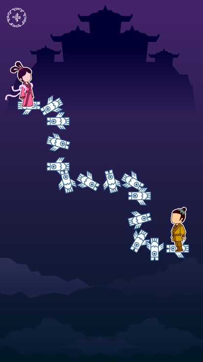 七夕会以中国古典神话传说牛郎织女的故事为背景开发的中国风益智游戏,连接喜鹊搭的桥就可以让牛郎织女见面,其中还有天兵天将来捣乱,牛郎织女能否成功约会就看你的了!