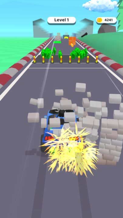 Take the Blobs and grind them in your car to make fuel and fill your tank and enter the race as quickly as possible, dodge the various obstacles and try to stay on the road! Be as fast as possible to get there first!