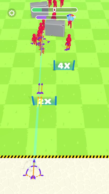 * Multiply your arrows by shooting them through multiplier gates. Be careful, Enemies can multiply too!