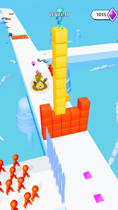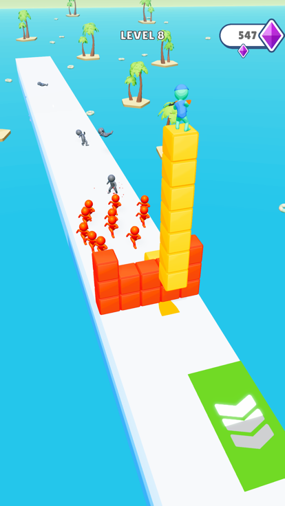 Stack and ride the cubes, shoot while surfing and escape from your enemies.
