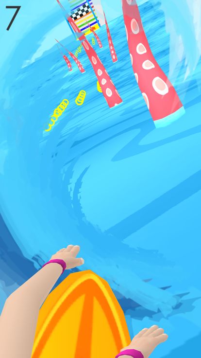 Catch the most brutal wave you've ever seen, and avoid Megalodon the Kraken and other dangers as you ride to the finish line towards the ramp.