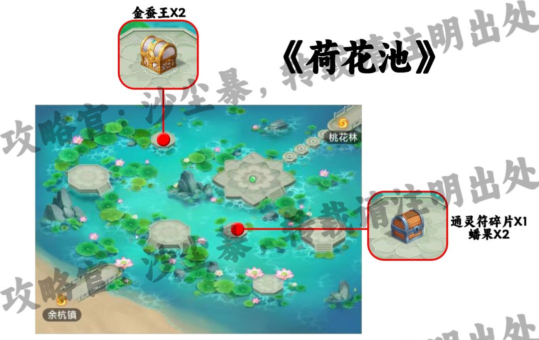 新的开始在游戏场景里也会有一系列的隐藏小彩蛋,这里将彩蛋都标注在地图上了,方便各位寻找 方法:点击图片中展示的位置即可获取物品,如果一次没出可以在附近多点几次,大致位置是不变的 1.荷花池 2.桃花林 3.水月宫