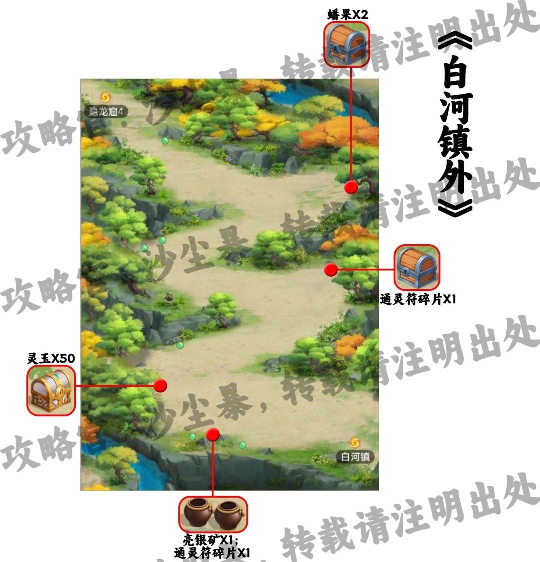 新的开始在游戏场景里也会有一系列的隐藏小彩蛋,这里将彩蛋都标注在地图上了,方便各位寻找 方法:点击图片中展示的位置即可获取物品,如果一次没出可以在附近多点几次,大致位置是不变的 1.白河镇外 2.白河镇+一笔画宝箱 3.医馆 4.玉佛寺 玉佛寺上面的宝箱因为太靠上经常有人忽略,所以还是标一下