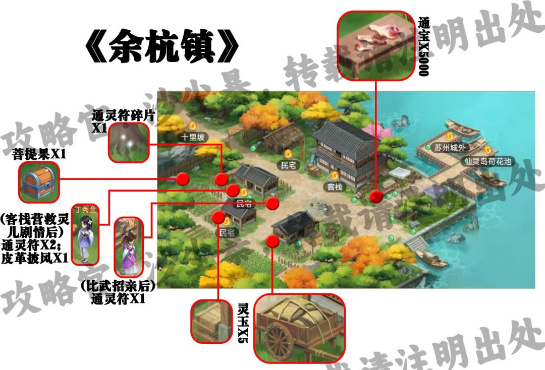 新的开始在游戏场景里也会有一系列的隐藏小彩蛋,这里将彩蛋都标注在地图上了,方便各位寻找 方法:点击图片中展示的位置即可获取物品,如果一次没出可以在附近多点几次,大致位置是不变的 1.余杭镇 最下面两个图代表板车和箱子都给5灵玉 2.客栈 客栈内部好多房间里都有东西,而且有的房间构造差不多,这里就只展示房间内有啥了,具体位置从房间里找到小图所在位置就行了 3.李逍遥房 4.十里坡
