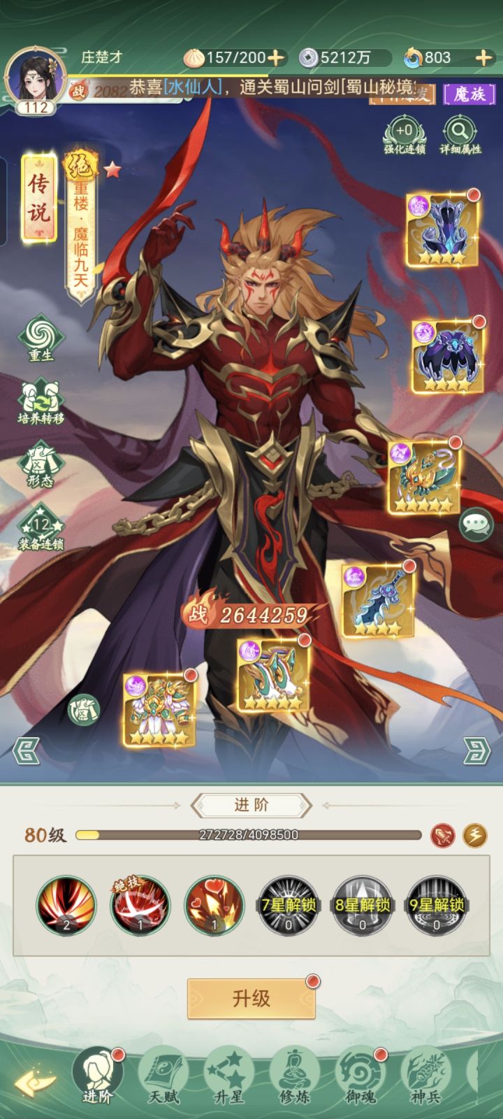 12416w过了这关。 再等酒剑仙27层修炼满,白五连锁也差最后一件了,外加灵珠,应该能到560w,那时候可以每天试一下神降2-7了。 #仙剑奇侠传新的开始