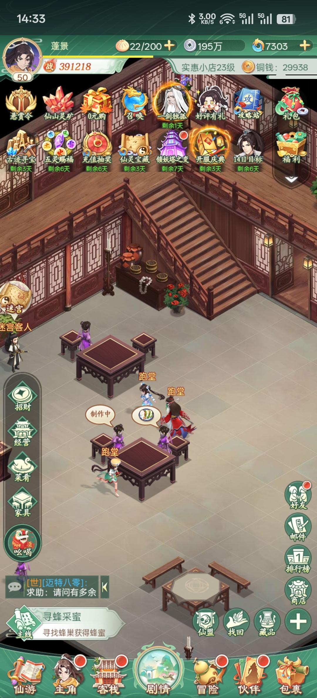 比之前玩过的仙剑手游好玩,但还有还多待改进的地方。1.战斗模式,你说纯自动ai智商不高就算了,手动你咋还搞个半自动呢,本来优先击杀就可以简单过的,硬要卡你,例如灯笼怪和酒坛子。2,那个什么组队任务,明知道是滚服游戏人都没几个,哪里组得起?你还不如让我一个人上6个角色得了,或者直接搞两个ai队友就得了。