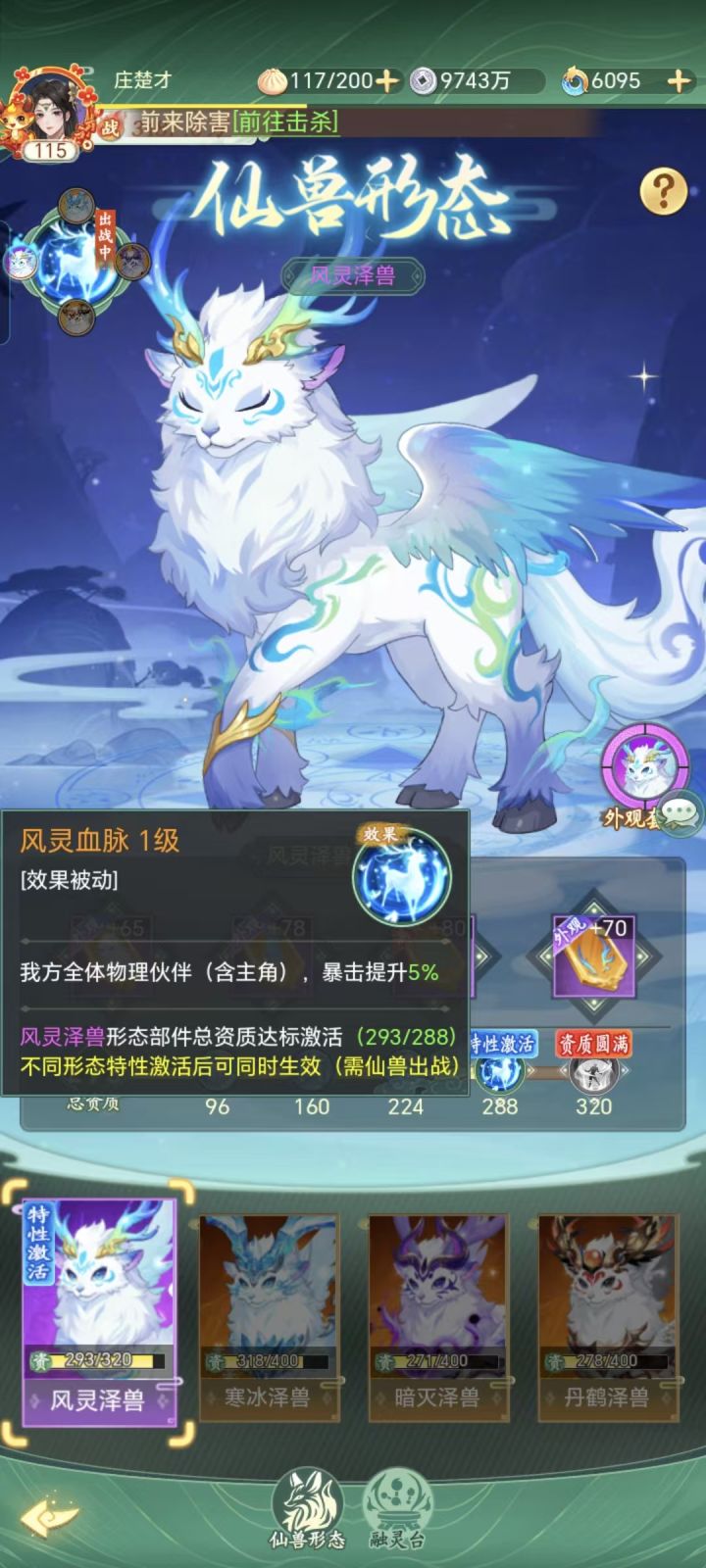 风灵泽兽的风灵血脉1级技能已经点亮,所有物攻伙伴(剑圣,酒剑仙,徐长卿,魔楼)的暴击等级为啥没有变化,有哪个大佬知道是怎么回事
