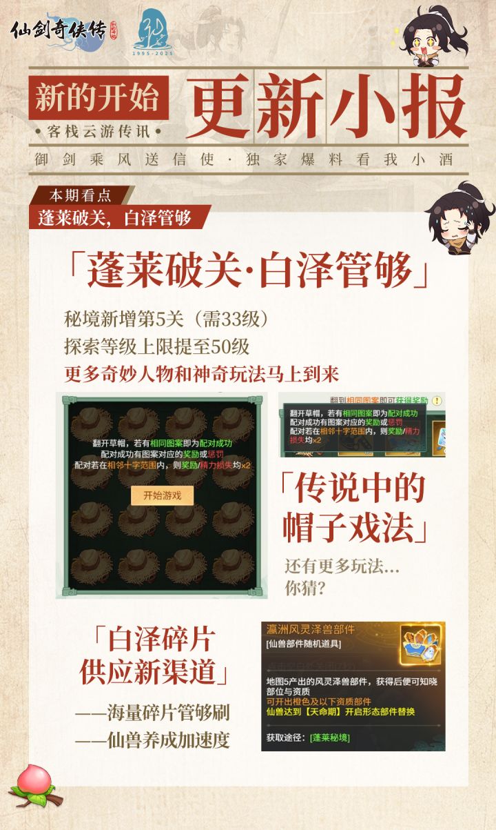 「御剑乘风,八卦速达!」籼米注意!本期小报暗藏 三重王炸:🦋 毒门仙子 破阶美出六界新高度!⭐ 蓬莱新关卡 白泽碎片供应加倍!🌙 幻瞑之主 携绝版神兵空降卡池!⚔️ 附赠裂隙深渊 ——小酒亲测:血赚!👉 快戳图鉴收福利,错过等三年!福利放送礼包码:寒梅礼包截止:25年8月24日礼包领取方式:游戏-头像-礼包兑换不要走错咯~