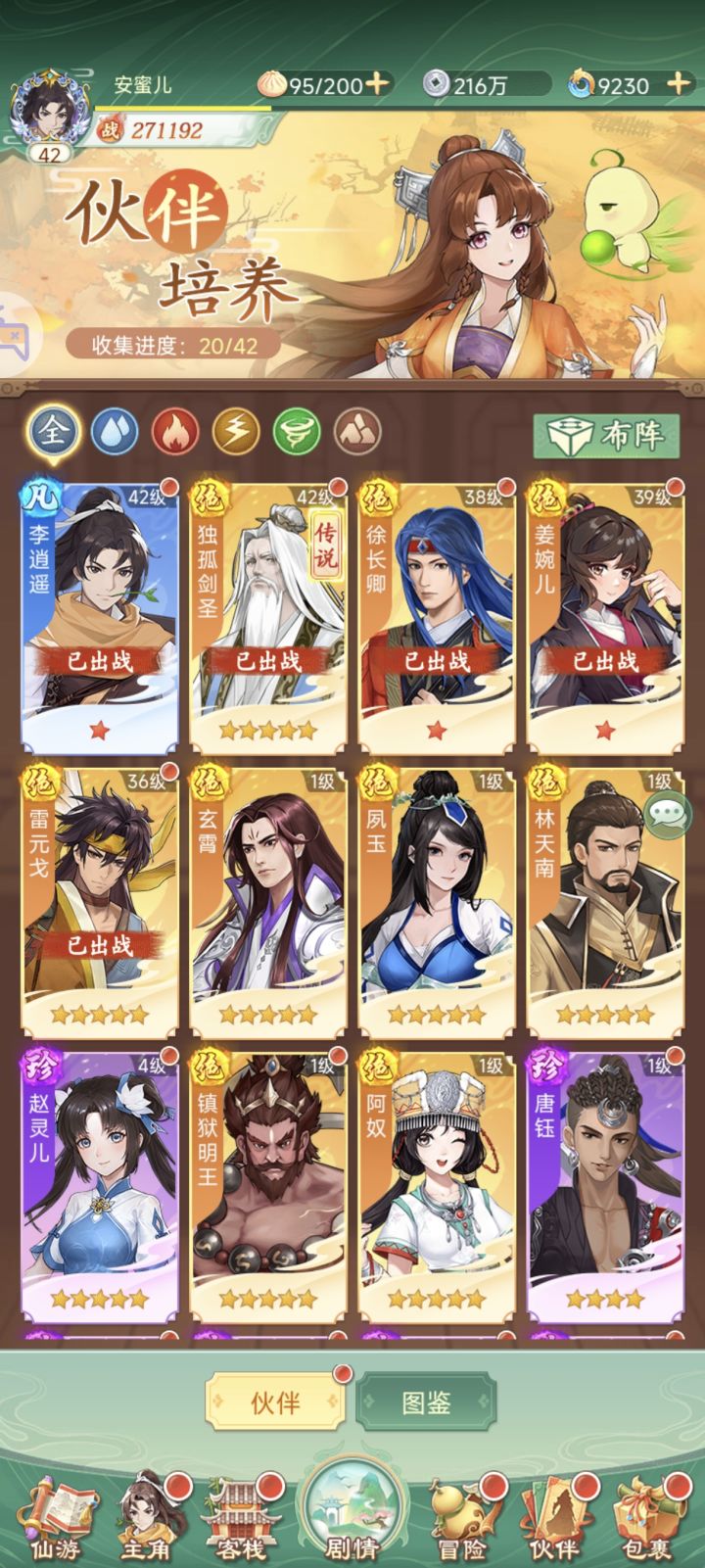 理论上到锁妖塔 紫色都能满星了吧 虽然没啥用 12345的先发。2345四个人弄一套阵容就够了 不用一直换 你这输出明显不够。前期其实没必要去弄柳梦璃。碰到回血的怪物你这伤害不够看