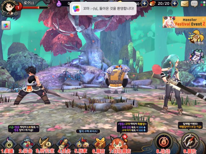 因为游戏暂时不支持中文原因,今天给大家简单介绍《妖怪传说》游戏页面上有些内容(翻译):)#游戏页面1. 英雄1. 队员管理:玩家可以分成猎人组和妖怪组的队员。2. 升级:通过升级材料可进行英雄升级3. 升星级:通过升星级的材料可进行升星级4. 超越 : 6星 Lv30 以上的话,可进行超越。英雄超越的话,成长最大英雄等级+2,基本技能点会变高。5. 角色图鉴:可以查看英雄基本信息