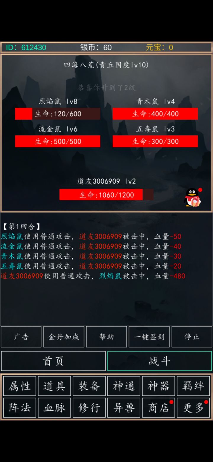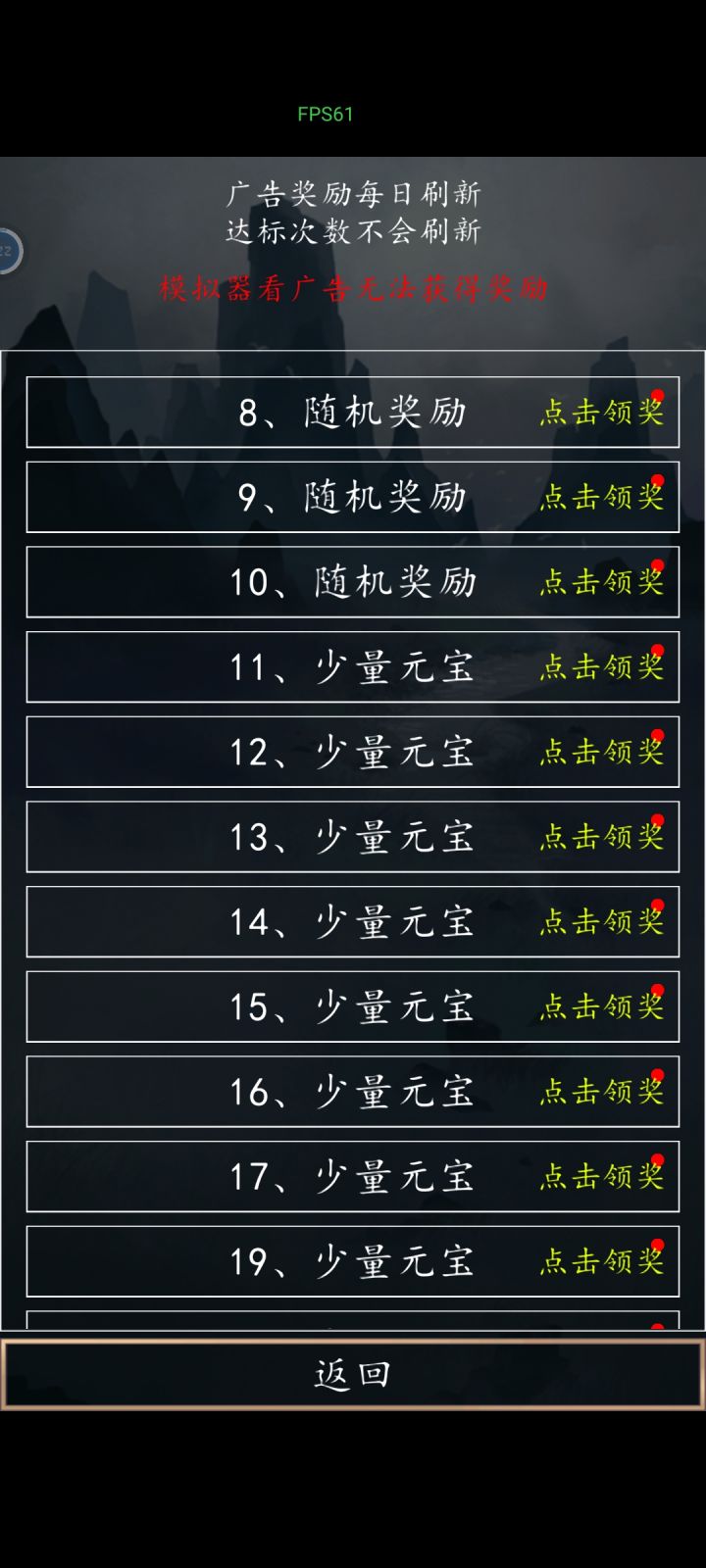 妈耶,第一次玩到这个游戏,眼神一亮,简直让人欲罢不能。进游戏先挂图,挂一个能秒的图,然后专心看广告,看完广告后就可以开始偷图了,去能打死一个怪的图偷技能和签到。然后回到继续能秒的图挂着收菜就可以了,不肝不氪