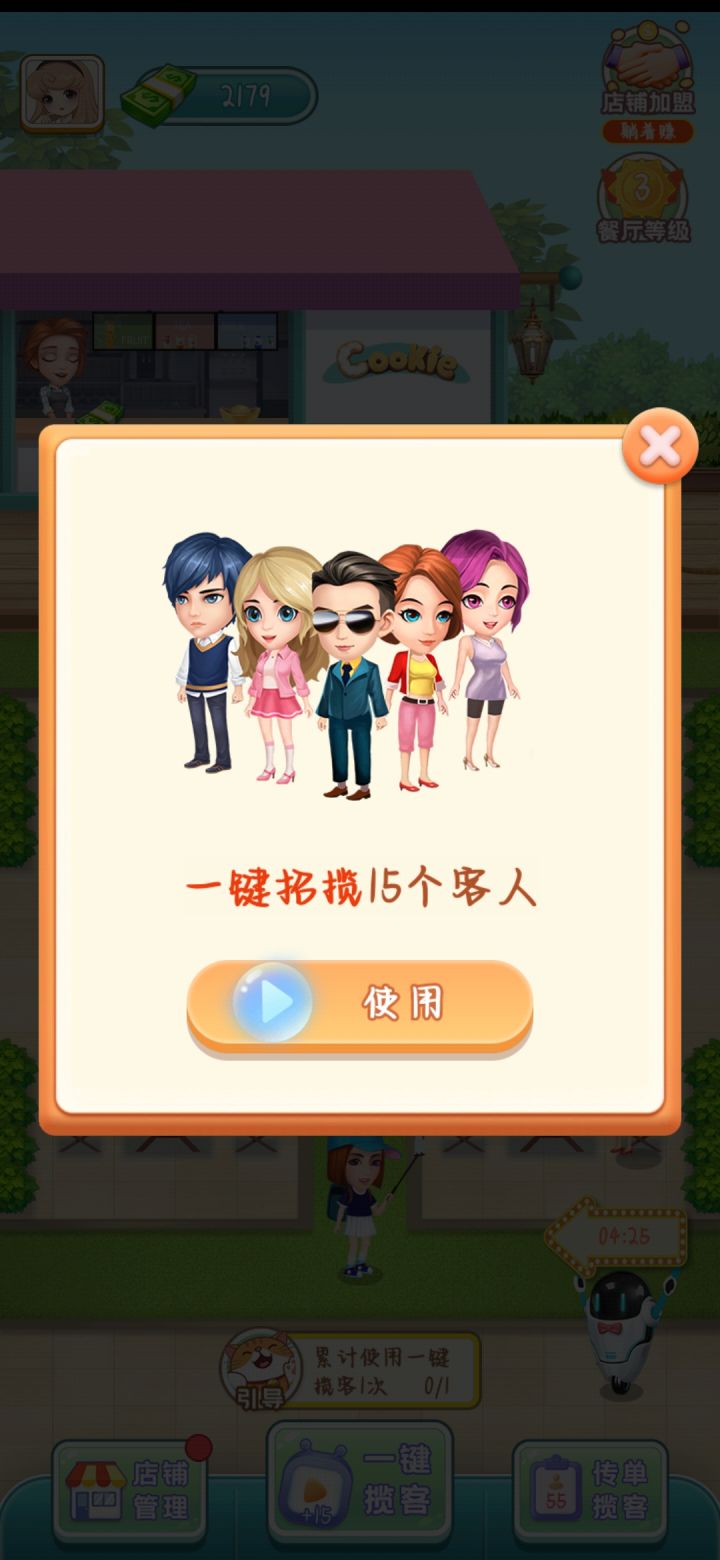 画风一般般,如图所示。玩法单调,就是一直点,类似这种的游戏真的超级多(像三界铲屎官等等),而且这游戏所有功能就第二张图那一点,也可能升到八级进入店铺加盟会多点,但是基础功能肯定大差不差
