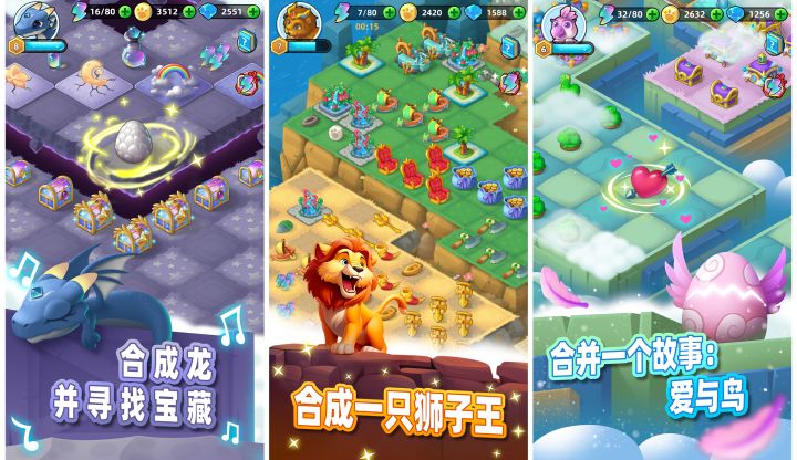 问题1:怎么合成物品? 拖动物品,即可操作合成并升级。 至少需要3个相同的物品才可合成,此外将5个相同的物品合成在一起,还会获得2个升级的物品!您可以进行无限次的合成,但合理地利用资源,才能更快合成所需品哦 问题2:功能解锁流程是怎样的? 等级二解锁动物喂食功能,通过给动物喂食获得魔法球打败女巫;等级三可以解锁图鉴功能,开采出新的资源点会给与奖励,这里会展示整个合成链;等级四开放商店功能,这里可以