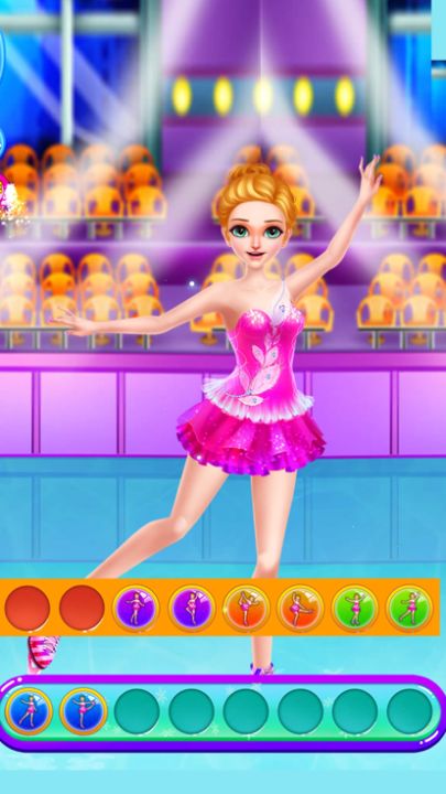 帮助公主挑选出色的舞蹈动作,并跟上节奏。这是她滑冰比赛前最后一次练习了。