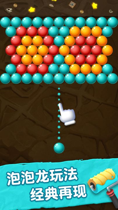 三个同色泡泡相连就能消除,左右滑动就能发射,墙壁还支持反弹哦~