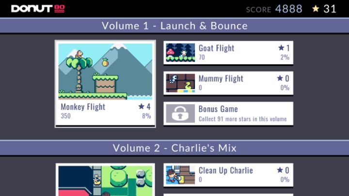 Donut 80 is a collection of games and demakes of classic Donut Games featuring low resolution graphics, 16-color palettes and chip music.