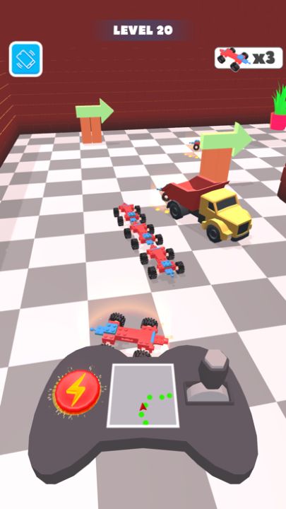 We have to get our cars out of the room, find them with the help of navigation and avoid obstacles. You can accelerate and maneuver with the nitro button.