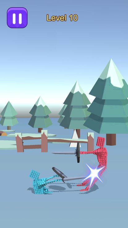 在游戏中,你操控的蓝色方块小人将与红色方块小人进行生死决战。
