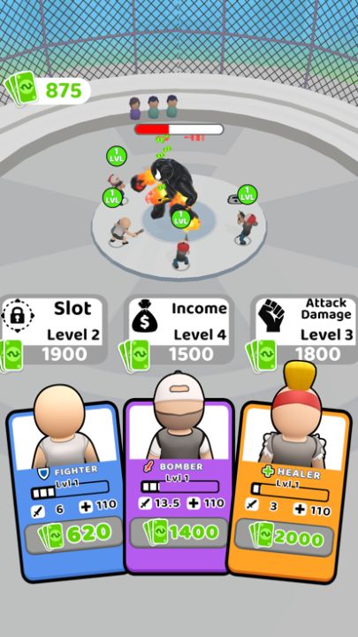 Click, Earn, Train and FIGHT! Let your fighters fight against big bosses in the arena and gain high!