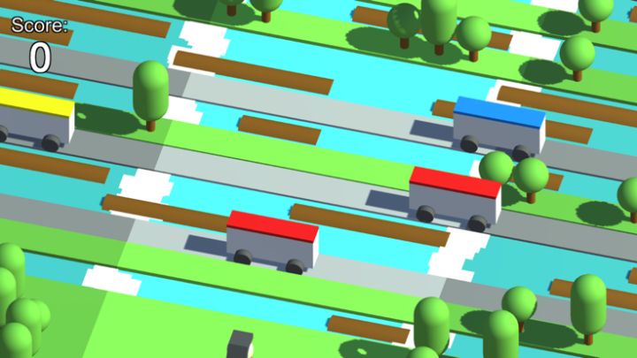 The game is about advancing farther while avoiding cars and obstacles.