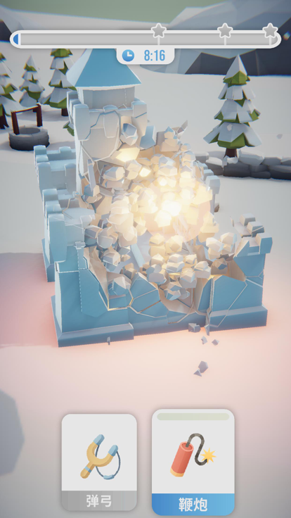 使用各种武器,尽情破坏吧!在规定时间内,尽可能破坏冰雕,获得丰厚的奖励,解锁更多武器与道具。