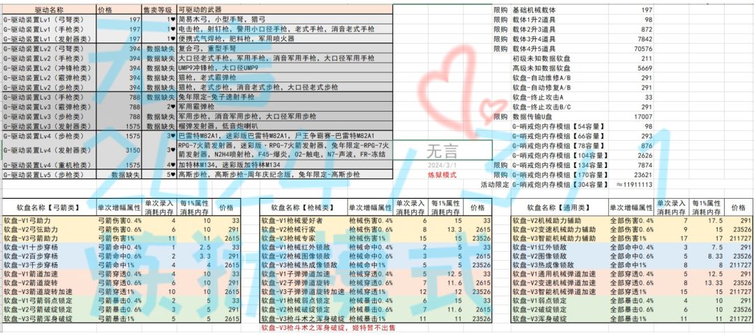 因为想整一个满配哨戒炮但是论坛里面搜不到想要的攻略所以就直接自己整合了一份。 目前数据还不全,也许因为眼花还有错误的地方,欢迎大家补充指正~ 炼狱跟战旗的哨戒炮还是有一定区别的,更多的软盘(自动换弹自动攻击之类的以及控制头盔),还有战旗录入的技能与内存模组绑定,但是炼狱录入的技能与哨戒炮本体绑定(意思就是战旗哨戒炮想换技能直接更换内存模组就行了,炼狱需要转移或者删掉重新录入) 软盘录入的成功率是伪
