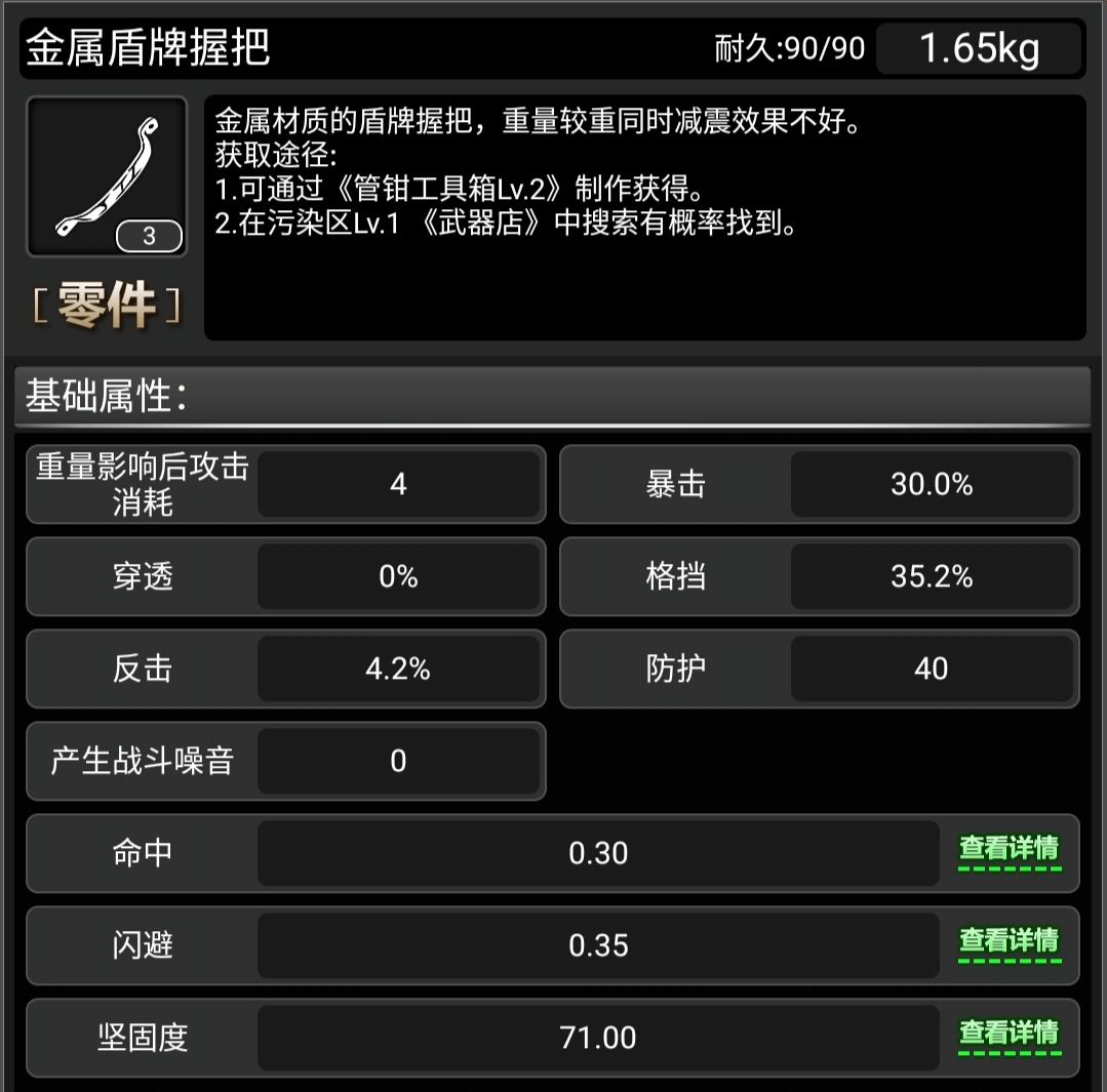 有30%的暴击和格挡是天赋的加成,不是本身自带,可以直接减去。 最好的就是碳纤维盾牌握把,合金盾自带,合金盾是最高等级护盾,开箱子或者活动都可以获取。 战旗武器图鉴大全(2025年) https://www.taptap.cn/moment/575364302106527666?share_id=1c86844122e1&utm_medium=share&utm_source=copylink