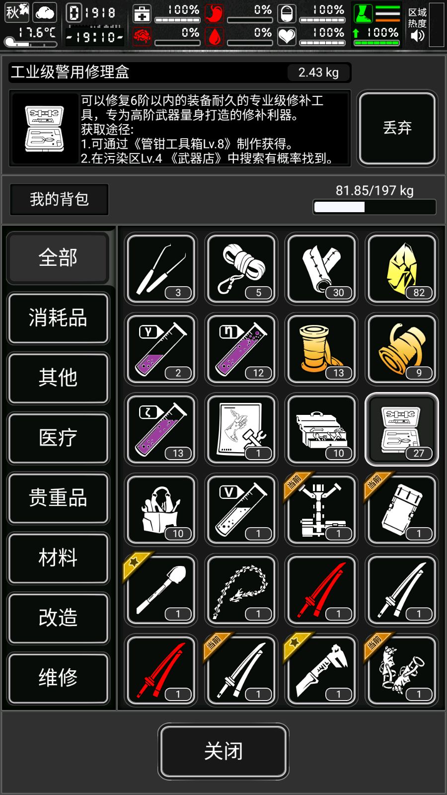 别问我为啥不带闪去闪岩胄站撸,哪怕我满战依旧有翻车的几率,debuff太多了,动力锤没有持盾攻击太容易吃buff了,外加一次暴击一百多血,我懒得赌😂