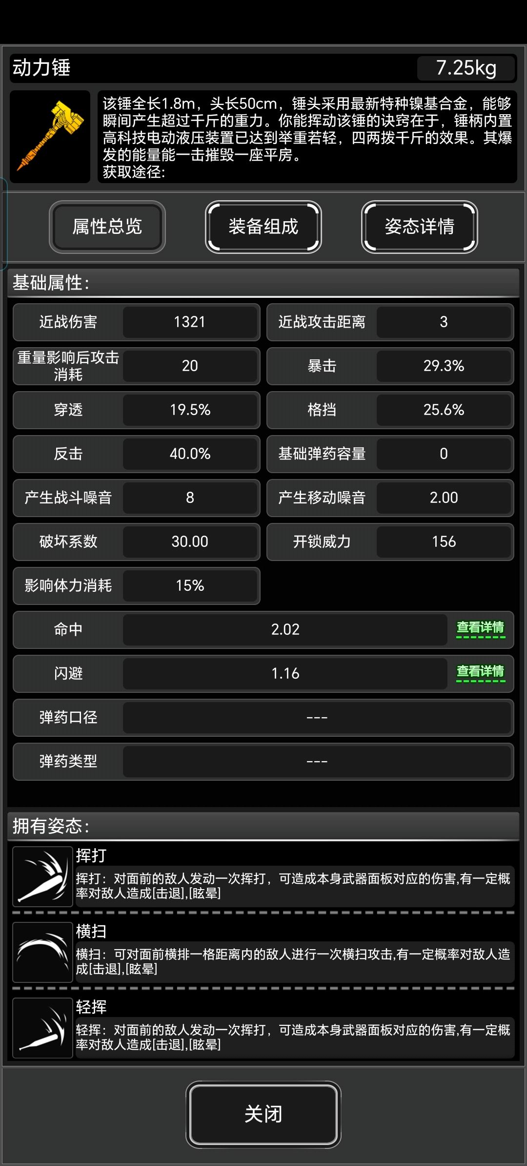 众嗦粥汁,战旗的限定动力锤,配重才是本体,新人换出来就容易惊讶,怎么换了个普通动力锤,其实把这个配重装上去就变样了。(别说我又重复了一遍,我得向萌新解释这个问题) 不是很推荐,维修太贵了,但是它本身确实算厉害,毕竟是最高级武器,所以给2星。 更多武器请点击: