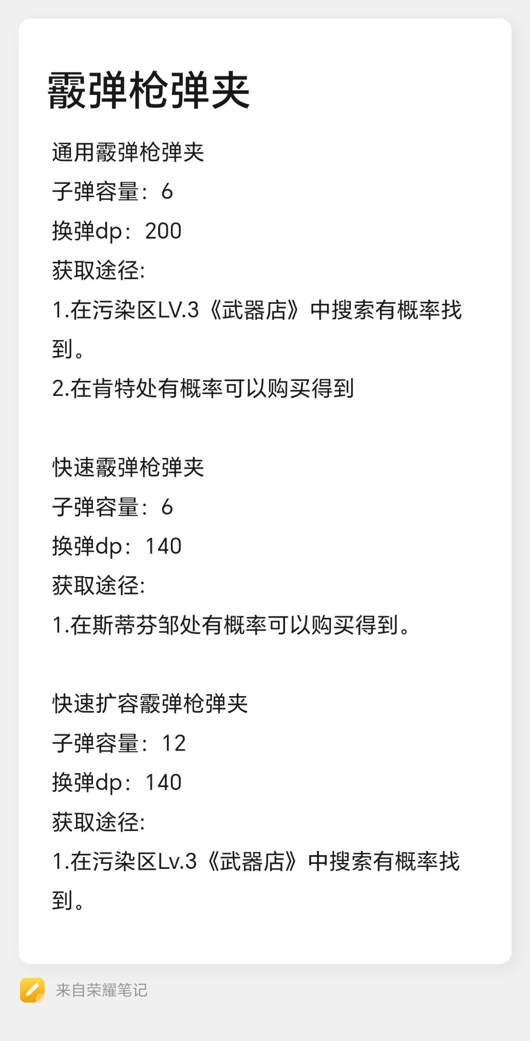 数据与手枪子弹、步枪子弹不同,为满天赋+SG 获取方式: