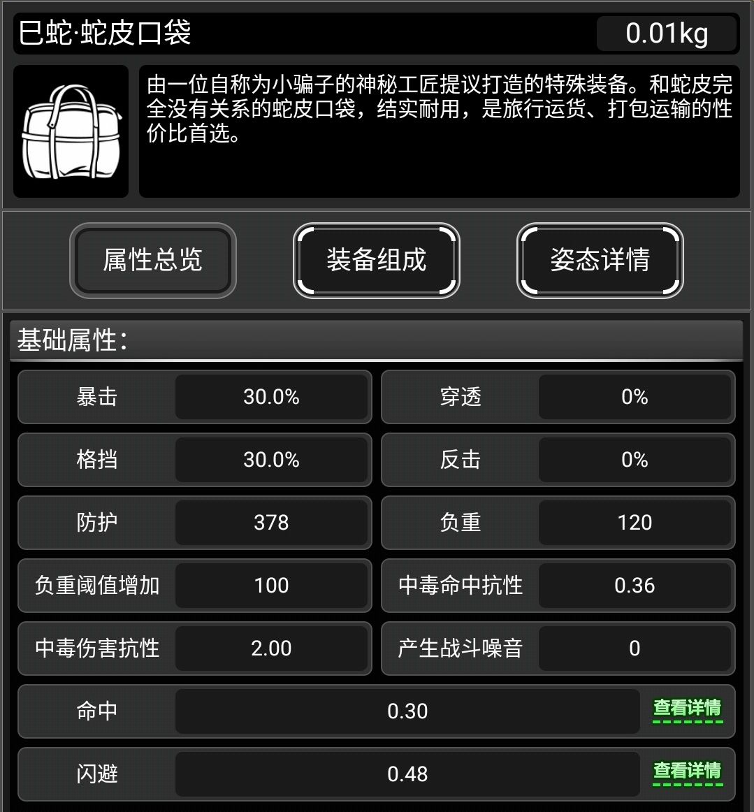 离谱,一个加378防御的背包,有了它,你可以不再被持盾限制,新城必备! 容量较小,日常可以继续用骨包,出门可以带着,打怪时可以用上,新城上传必备,自己可以不用带。 高防单配件,没多少可说的内容,就这么简单粗暴。 如果说蛇年的真神是美杜莎,那蛇包就是次神。 一个纯纯机制怪,机制不改永T0。 一个纯纯数值怪,一个背包加这么多防御? 更多武器攻略请点击