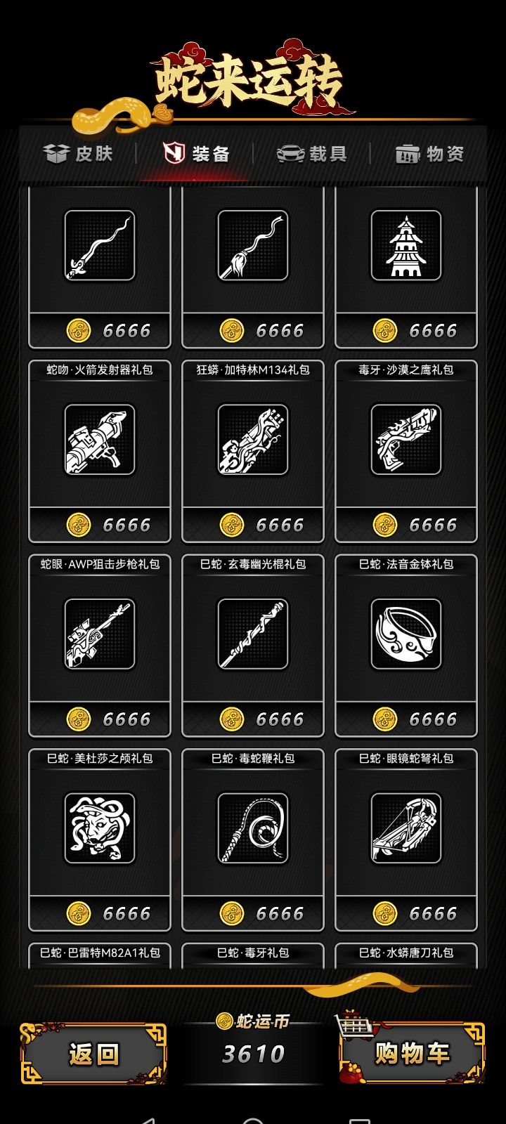 兑换推荐(仅供参考,只针对战旗模式): 新人新档装备兑换顺序推荐:蛇包,蛇鞭,蛇套(包含轻甲,手套,鸭舌帽),唐刀,蛇匕,蛇加特林,蛇awp,蛇巴雷特,最后换美杜莎(前期没用,但必须得有,新城必须的)。这个是新人新档装备兑换顺序。(针对萌新,蛇运币不多,只能换几个,甚至一个)。 以下是蛇运币富裕的,没有顺序,只看优先级,参考而已,具体自己决定: 1个蛇包(最优先级,防御超标,后面没有任何一个活